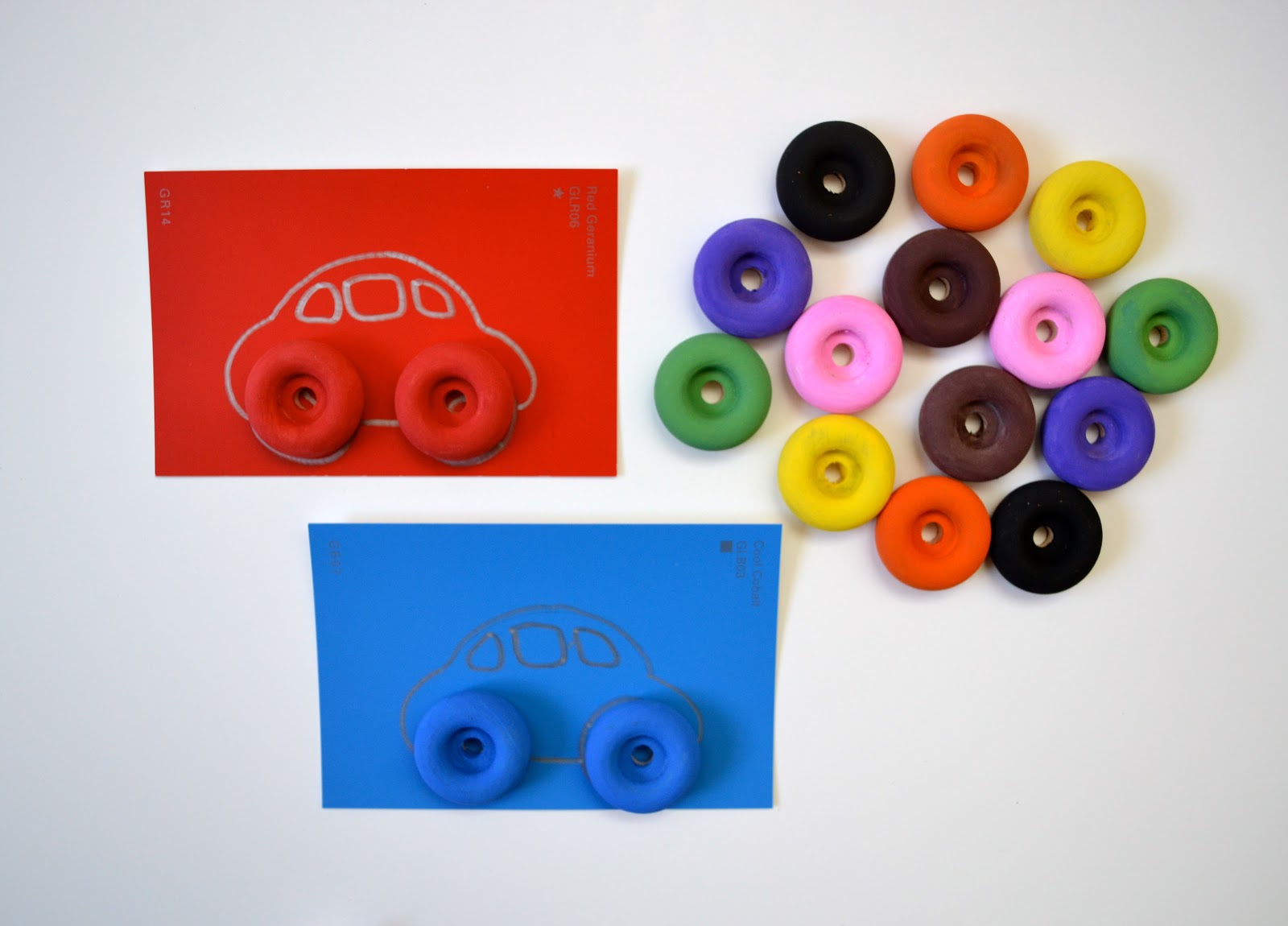 This is a super easy game that you can make for toddlers and preschoolers to help learn color matching. The idea is that your child has to match the correct colored wheels to each vehicle! Matching games like this are a fun, interactive way to teach kids their colors.