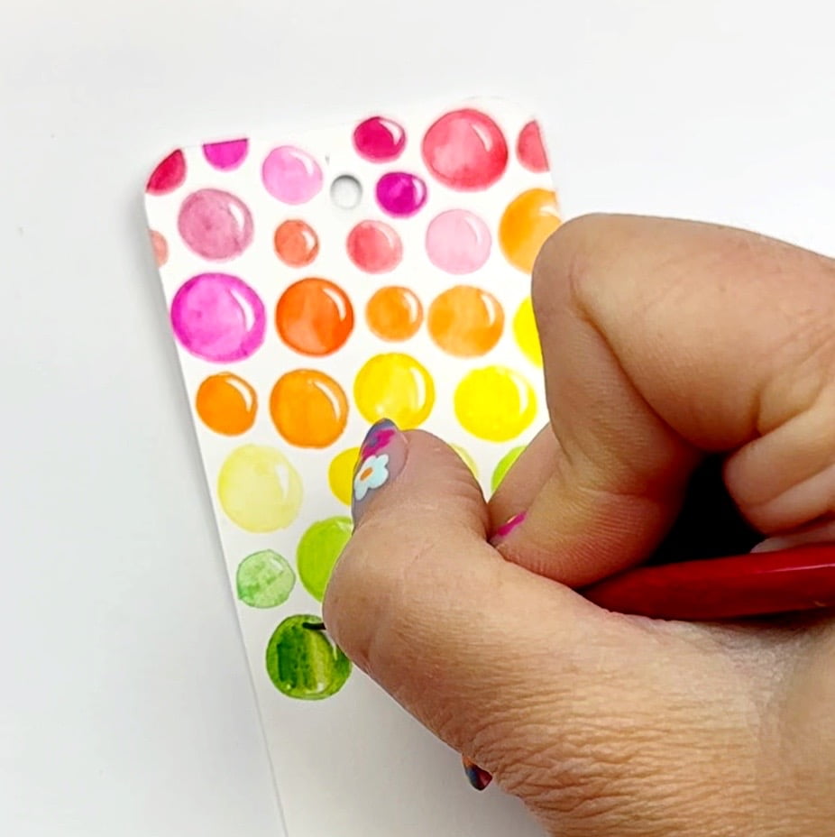 Step 5. Once dry you can add your tassel to the finished bubble bookmark. If you have a laminator and you want your bookmark to be even sturdier you could run it through the laminating machine before you add the tassel.