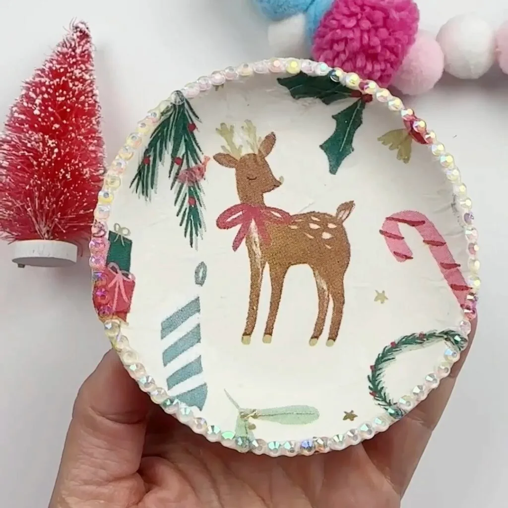 Making a Christmas napkin decoupage dish is a simple and fun craft. With so many holiday napkin patterns to choose from, each dish can have its own unique look. This beginner friendly project comes together quickly and makes a thoughtful holiday gift. These small trinket dishes are perfect for holding jewelry, keys, tiny treasures, or wrapped treats. They also work well as stocking stuffers, small hostess gifts, or thoughtful additions to holiday gift baskets.