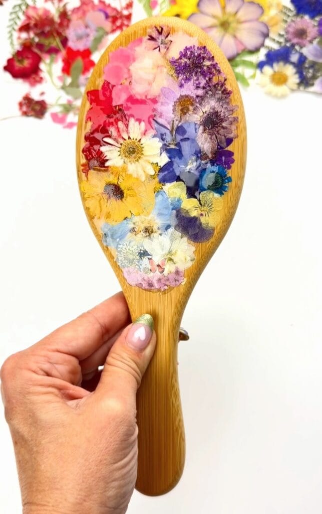 • Gift it for spring. A pressed flower resin brush makes a sweet handmade gift for birthdays, Mother’s Day, or bridesmaids.