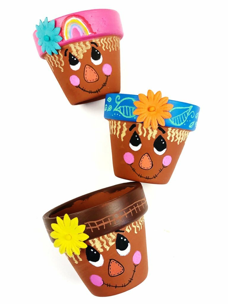 Learn how to make these adorable scarecrow flowerpots for fall.
